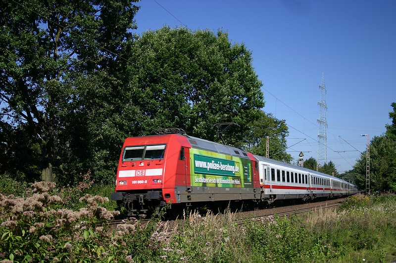 So kann die Woche beginnen:101 080 vor EC 23 am Abzweig Monhofer Feld